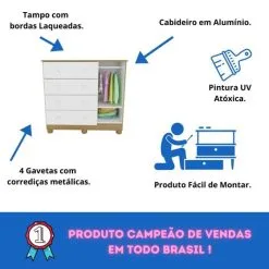 É uma Cômoda infantil Uli com 4 gavetas e 1 porta.D – Como organizar a Cômoda infantil Uli?