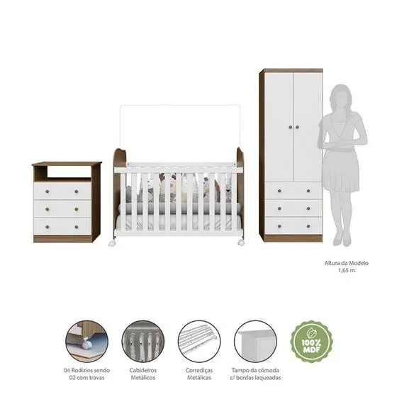 | Itens Inclusos | 1 Berço, 1 Guarda Roupa, 1 Cômoda, Kit Ferragens e Manual de Montagem |