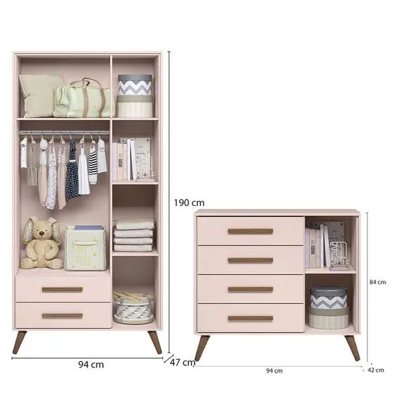 Quarto de Bebê Completo Qencanto Retrô Qmovi Rosa