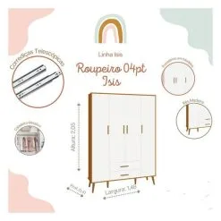 Guarda Roupa Infantil 4 Portas Isis Branco Acetinado Savana – Reller