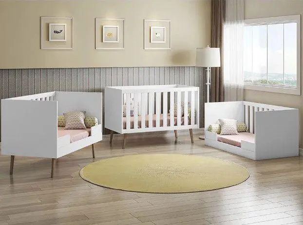 Quarto de Bebê Melinda com Berço Americano Retrô Ana Branco e Colchão Mobili – 100% MDF