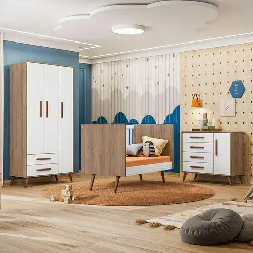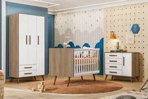 Quarto De Bebê Q Encanto Retrô Branco/carvalho Brilho