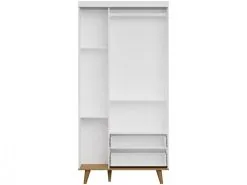 | Sistema de abertura do guarda-roupa | – Corrediças metálicas – Dobradiças metálicas |