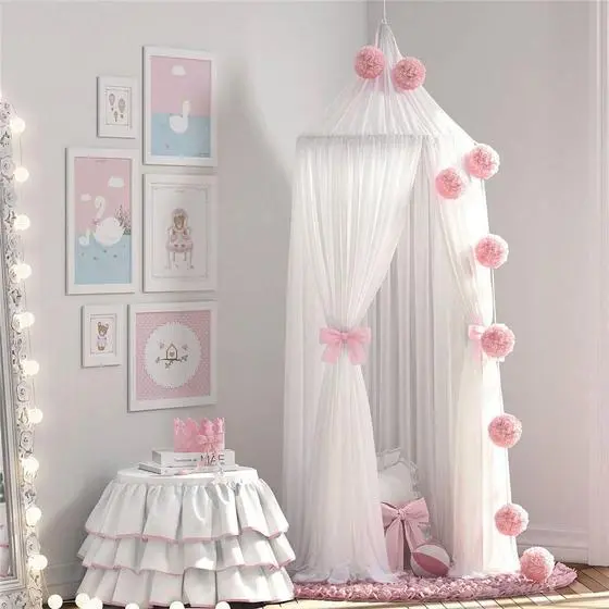 Tenda Dossel Branca com Pompom Princesa 2m Grão de Gente